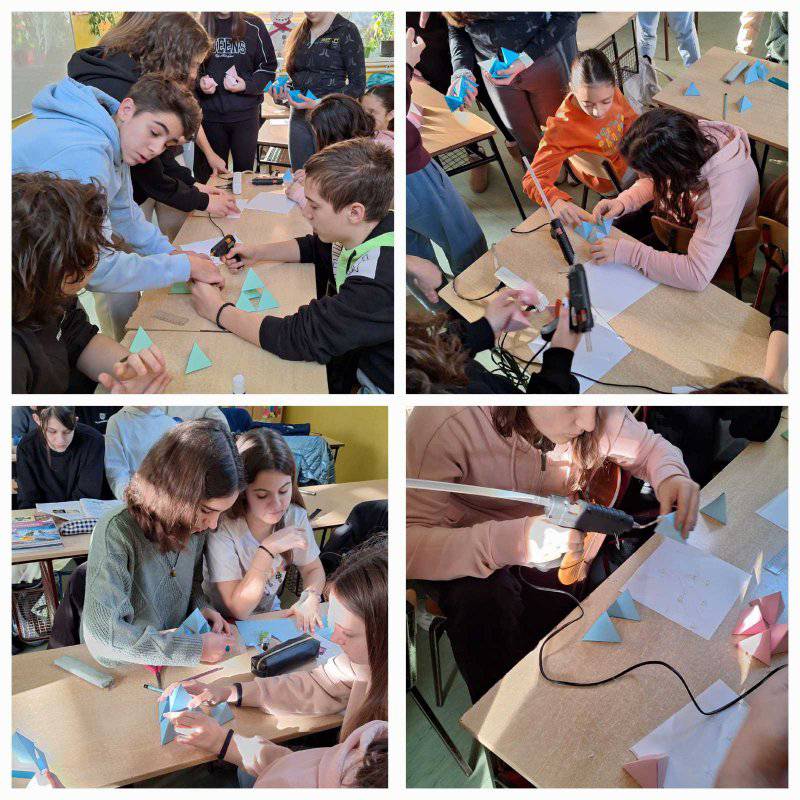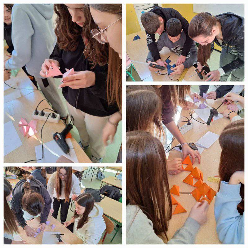 Ученици 8-1, 8-2 и 8-3 учествовали су у пројектном задатку "Пирамида Сјерпинског". За израду ове пирамиде направили су 256 тетраедара. Пирамида ће бити изложена у холу школе. Похваљујем све ученике и захваљујем се наставници ОШ "Братство-јединство", Марији Михајлов на идеји.