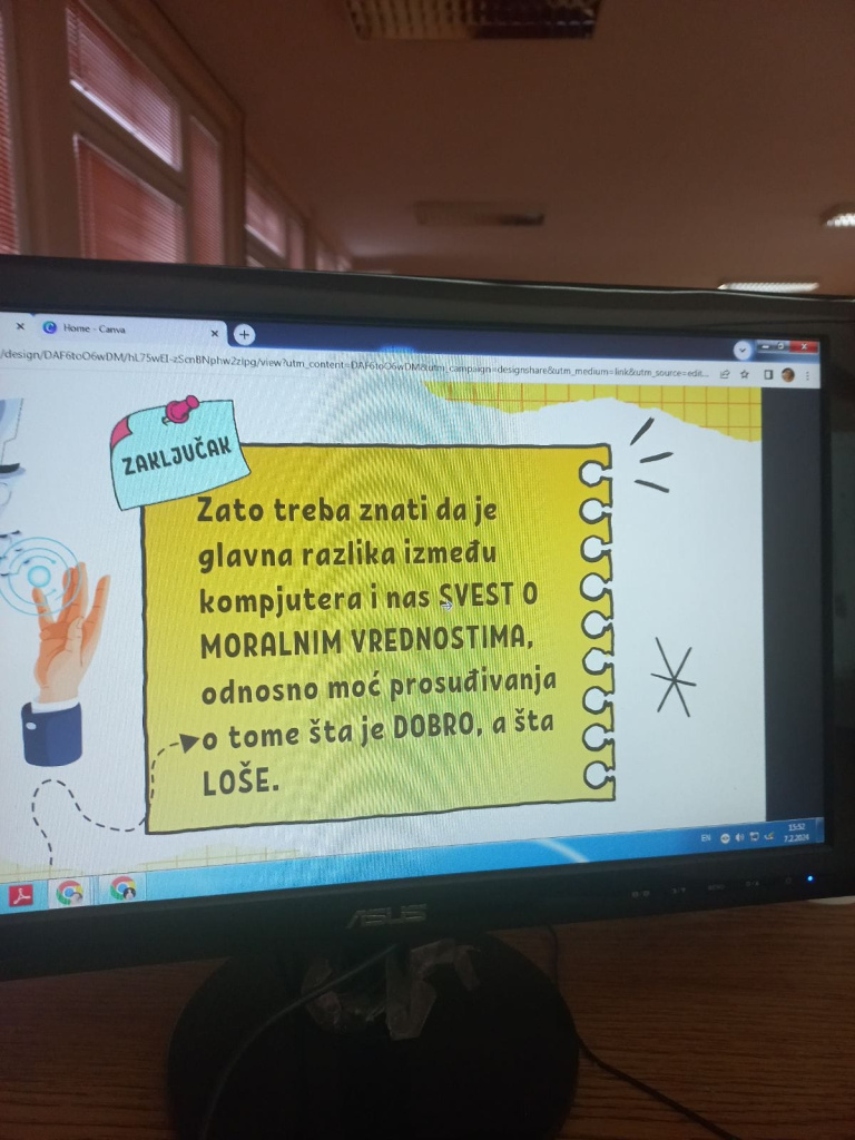 Ученици наше школе упознали су се са вештачком интелигенцијом, чиме се бави, који јој је главни циљ, врсте вештачке интелигенције, као и њене предности и мане.