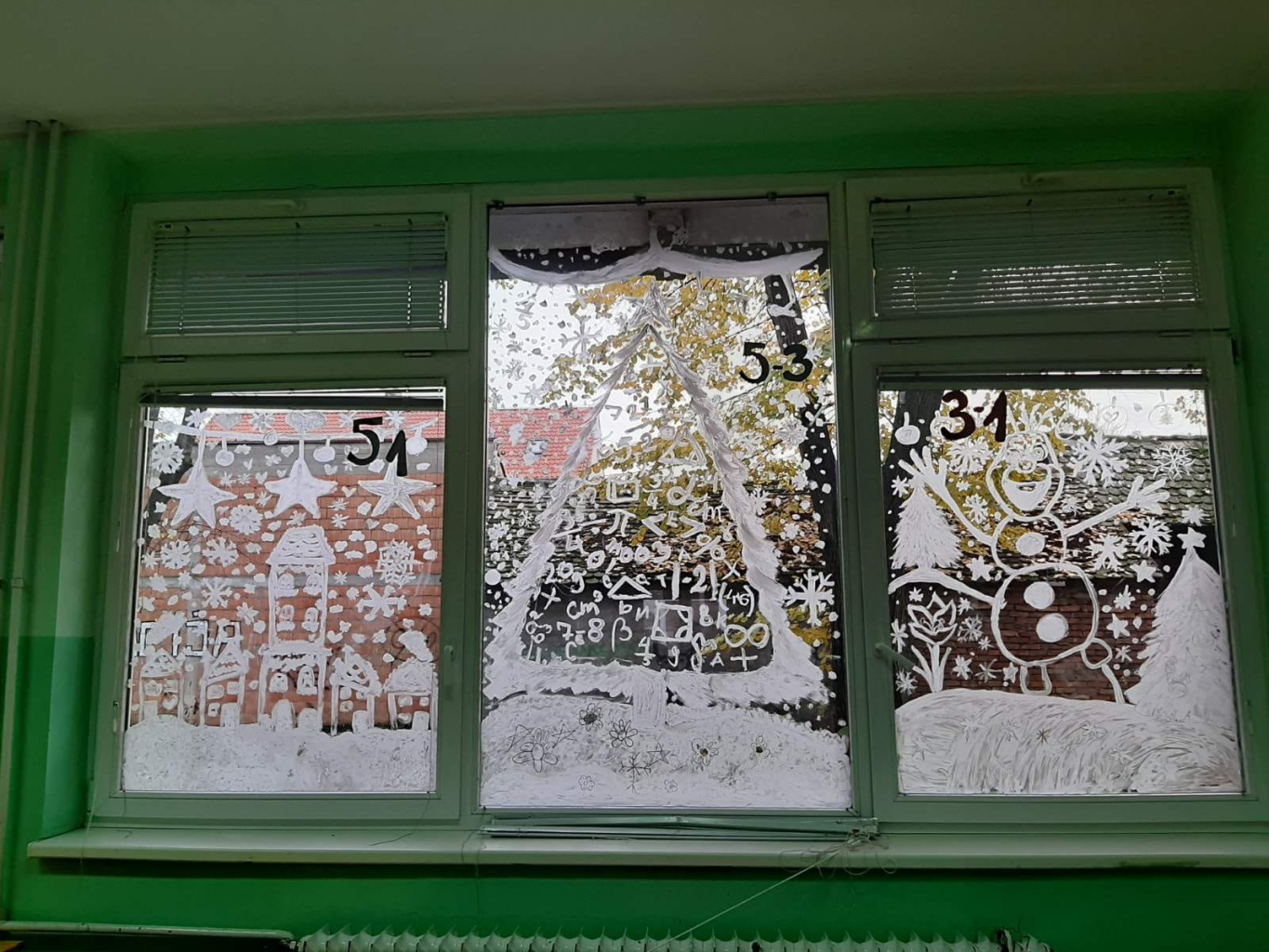 Вредне руке наших ученика и наставника украсише прозоре у учионицама и холу! Чекамо снег...