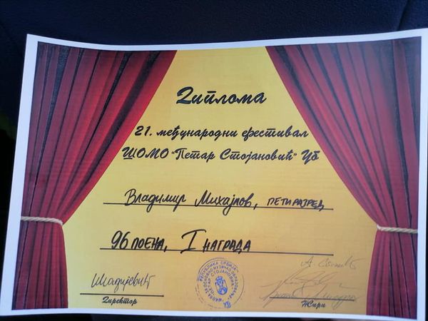 Владимир Михајлов 7/2 је освојио прву награду на међународном фестивалу музике. Подршка свим нашим ученицима који истовремено похађају и музичку школу или балетску школу.